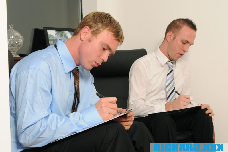 Synopsis: Bobby and Rex enter the office to fill out a job application. Bobby is very nervous, and when he asks Rex about his qualifications, Rex has a much stronger resume. When Rex excuses himself to use the bathroom, Bobby decides to make his move. He stops Rex outside the bathroom and they start getting busy in an adjoining empty office.